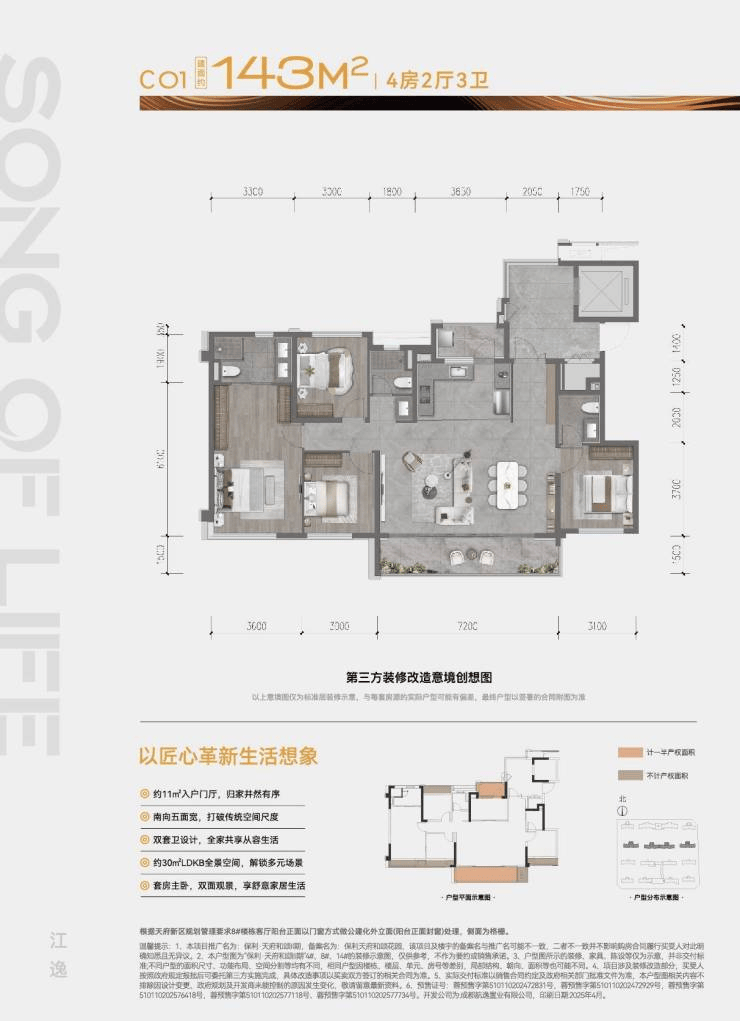 专注改善的面积段:项目主力户型锁定在建面约126㎡和143㎡,精准面向首改及再改客群。纯改善的面积段,确保了社区圈层的纯粹性,避免了大小户型混居带来的杂乱感。