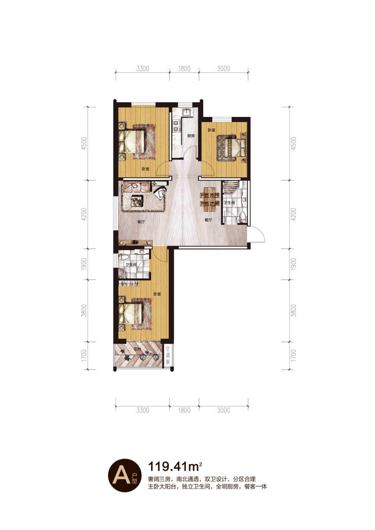 户型4 119.41㎡(三室两厅两卫)南北朝向