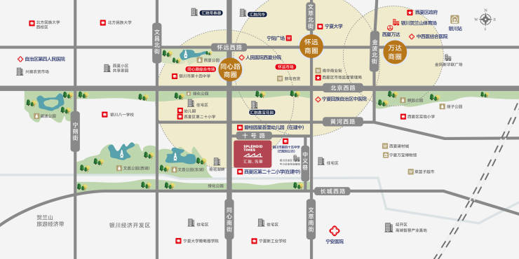 汇融芳华选址在西夏区核芯板块内,既坐享全生活资源汇聚的醇熟美好,又匹配资产价值提升的必备要素。西夏区坐拥三大核心商圈,分别为怀远商圈、西夏万达商圈以及同心路商圈。置业在芳华,步行5分钟便可到达同心路商圈,中式建筑的街道氛围极具标示性与氛围感,内有大型蔬菜水果市场,服饰日用商城,日用百货,各类小吃等,驱车不到10分钟便可到达怀远商圈,充分满足您的一切日常所需,在这里即可真正体验到一站式生活体验。