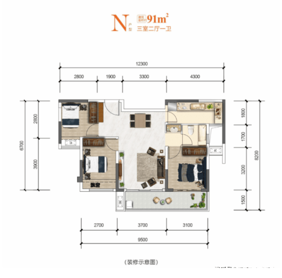 建面约91-101㎡ 功能性三房