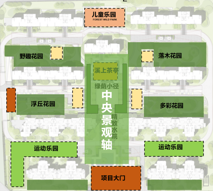 7大主题花园+5大架空层功能空间,涵盖全龄活动场所