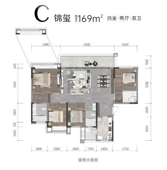 建面约169㎡四房户型