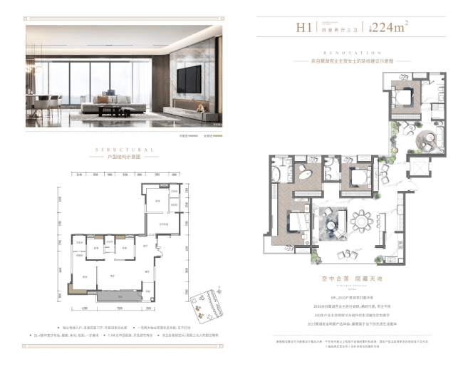 此系列是项目的巅峰藏品,旨在提供别墅级的空间体验。约224㎡的合院户型创新采用双院落设计,保障多代家庭的私密与共享。约287㎡的平墅则达到空间与视野的顶峰,拥有2梯2户、客厅+边厅的双厅布局以及约24米长的全景阳台,足以从容规划双主卧套房、中西双厨及多功能厅,是为城市塔尖人物定制的、可传承的河畔传世大宅。