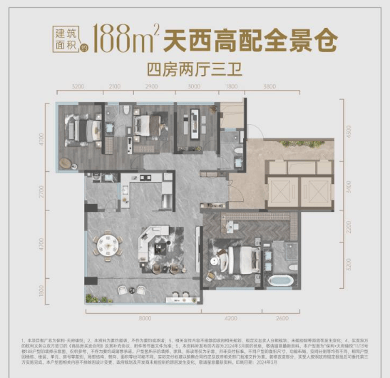 建面约188㎡四房两厅三卫