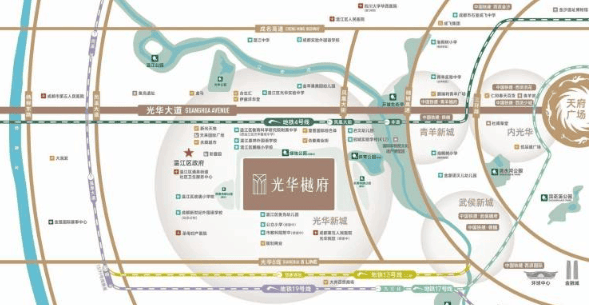 项目落子于温江近十年重点发展的光华新城板块,这里已崛起为城市级商业中心,配套醇熟,是公认的宜居高地。