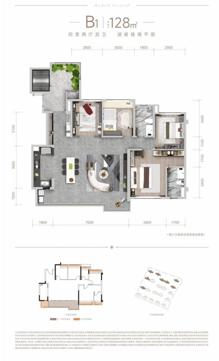 得房率优势:112㎡实得113㎡;128㎡实得133㎡;143㎡实得151㎡