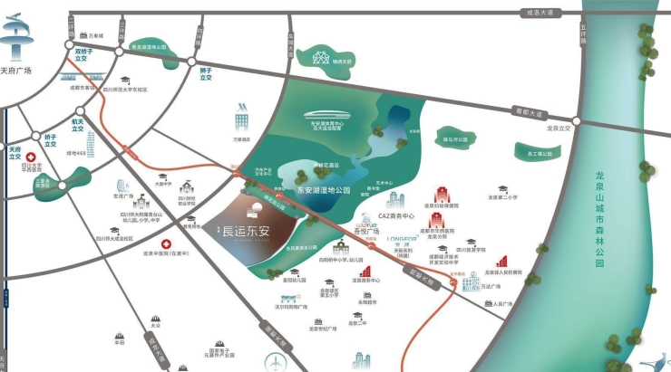 定位:项目紧挨地铁2号线界牌站,东安湖公园畔,位于东进桥头堡位置的东安湖板块,也是目前整个龙泉乃至整个城东最好、最具发展潜力的改善人居,既是东进的起点,也是连接东部新城和中心城区的重要支点,地理位置十分优越,配套齐全,加上大运会对整个板块的拉动,发展潜力突显