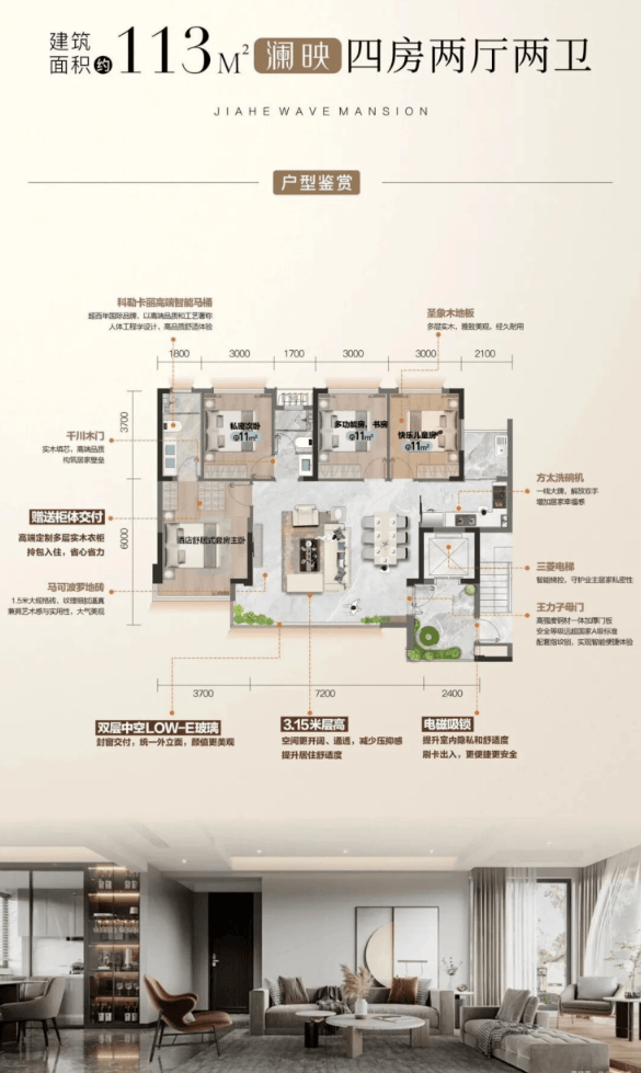 结合高达115%的得房率和3.15米层高,室内空间感远超同类产品,功能上可轻松布局为三房或四房,满足从首改到再改家庭的全周期需求。全屋精装交付的配置,让业主免去装修烦恼,轻松开启高品质的改善生活。