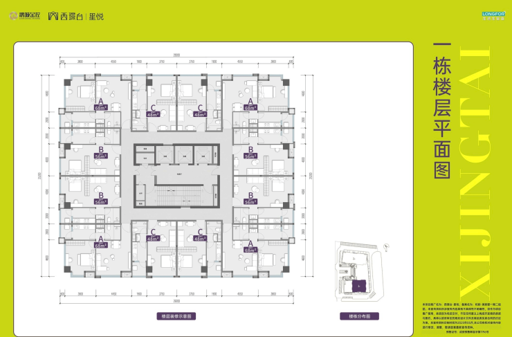 户型分布:1#楼约48㎡(标间)、约56㎡(标间)、约68㎡(套一)三个户型;2#楼约46㎡(套一)、约53㎡(套一)、约60㎡(标间)三个户型。(具体户型及分布见楼层平面图)