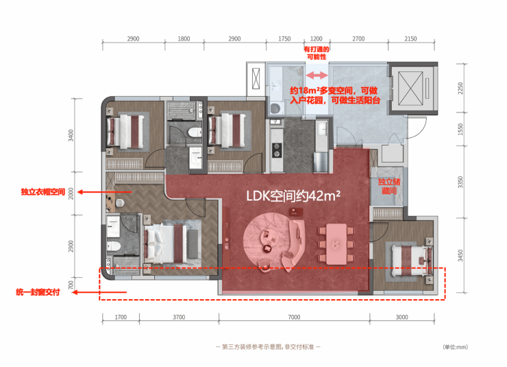 ?入户方式:电梯入户赠18-21平入户光厅,得房率117%