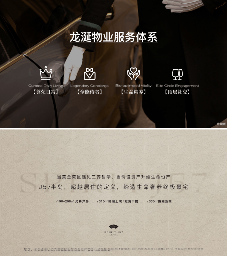 新绿色物业为顶序双子项目专属定制——龙涎物业服务体系,以【尊荣⽇常】【全能侍者】【⽣命精养】【顶层社交】四维⼀体服务体系,升级约130项全生命周期私属礼遇;同时叠加荷兰管家私人服务,同源世界顶豪基因,专为豪宅定制24小时私属体验,重构顶豪服务基因序列。
