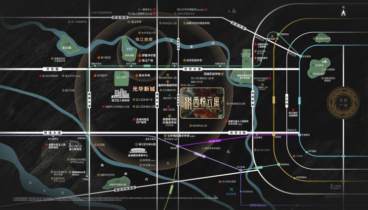 项目位于光华新城核心板块,温江发展最成熟区域,作为“西向成都核心引擎”,温江“三医两养一高地”的重要载体之一,兼得城市“中优”、“西控”利好,门户价值凸显,同时也是城西的商业中芯、生活中芯。