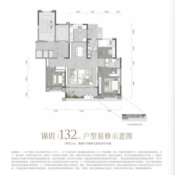 建面约132㎡ 三室两厅双卫
