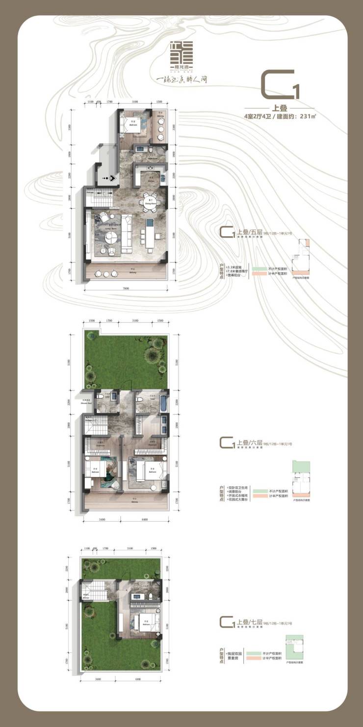 建面约410-472㎡山水双拼 建面约208-327㎡花境叠墅