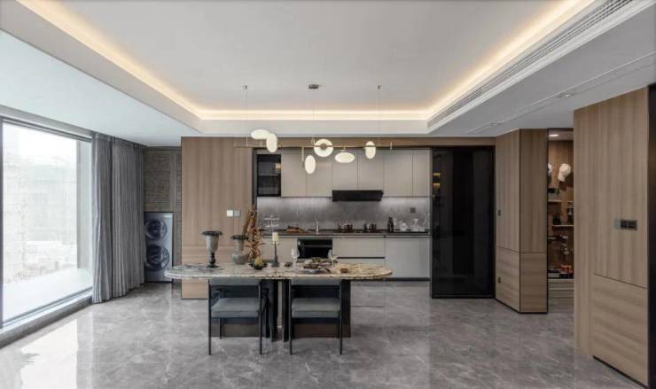 设计不算复杂,但也通过各种细节将归家的仪式感拉满,例如地下入户大堂定制的琥珀式星空顶、首层入户大堂大面积玻璃幕墙的设计等。