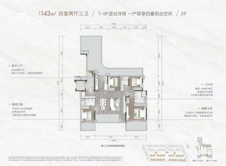 建筑面积约135-202㎡退台洋房,市面少见的先锋产品。