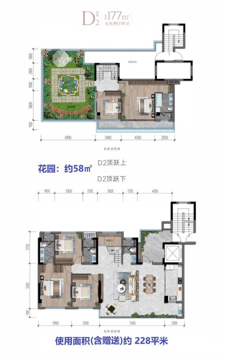 户型图177㎡顶跃五室两厅: