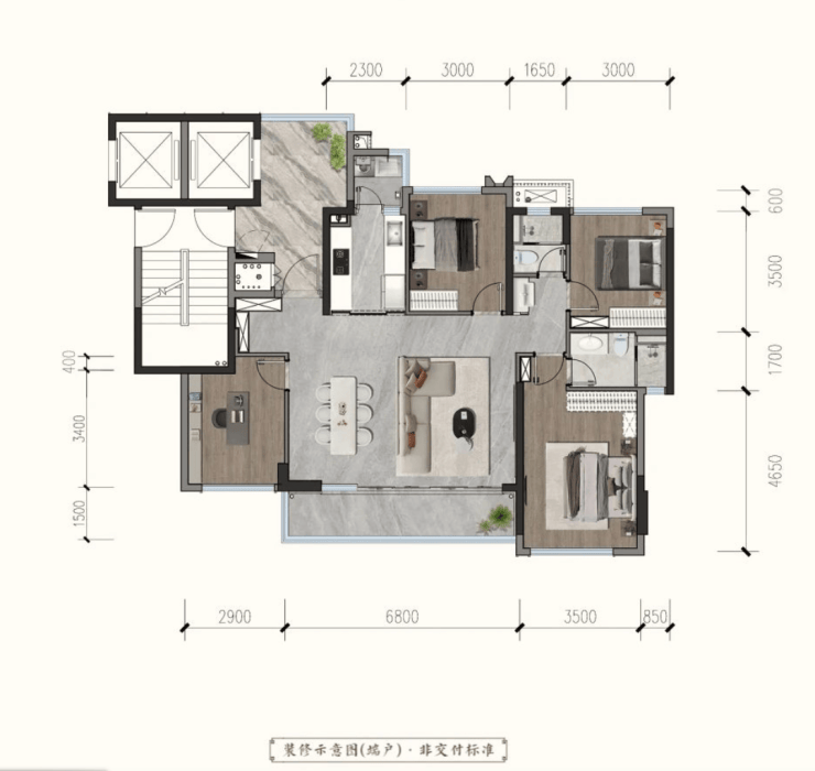 采用高标准精装修交付,从建材到工艺均选用优质一线品牌。以建面约188m户型为例,在精装配置上实现了全面进阶