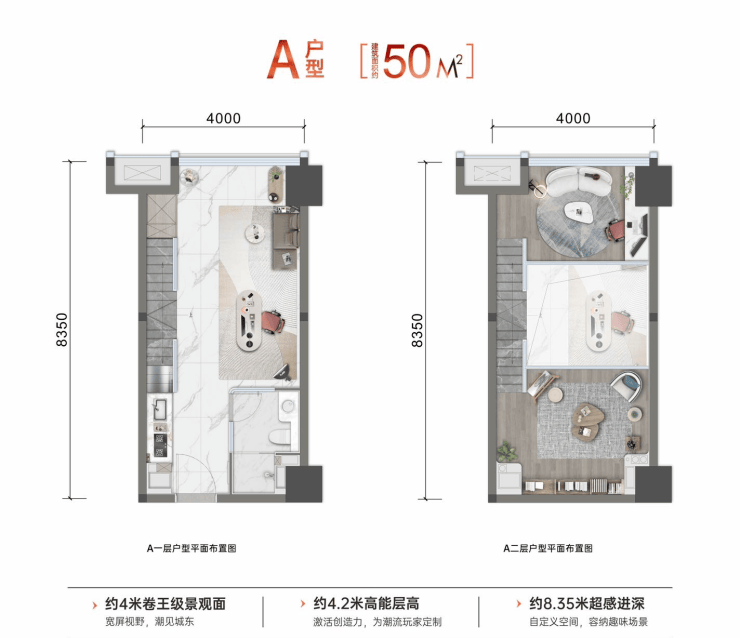 主力户型:4.2米跃变公馆 建面约50-60-80㎡