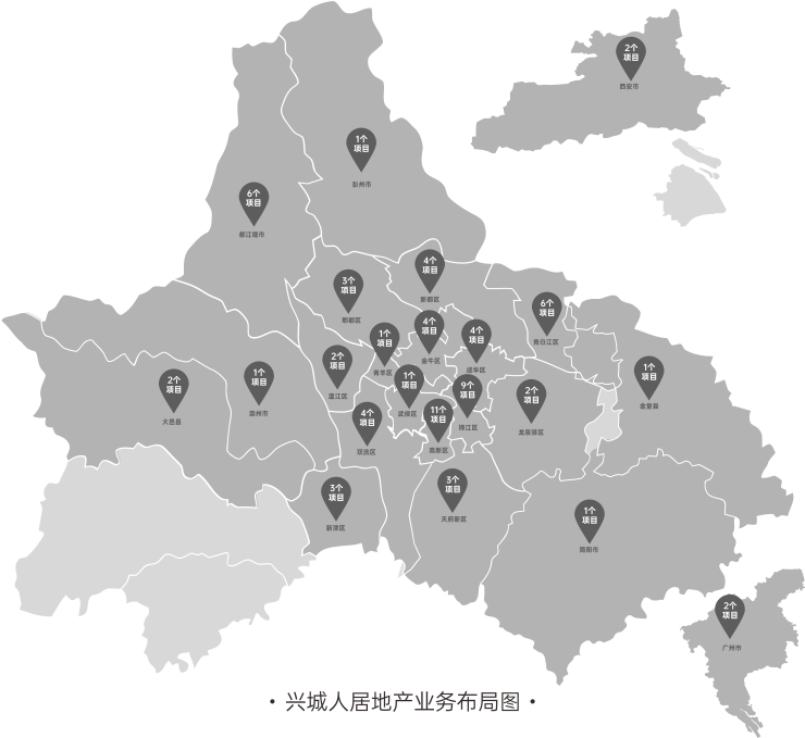兴城人居,兴城集团二级企业,多次荣获中国房地产业综合实力100强,累计开发项目约4000万㎡,综合实力居成都市属国有城市开发企业首位。秉持“ 城市需要,人居创造 ”的企业使命与成都一路同兴。