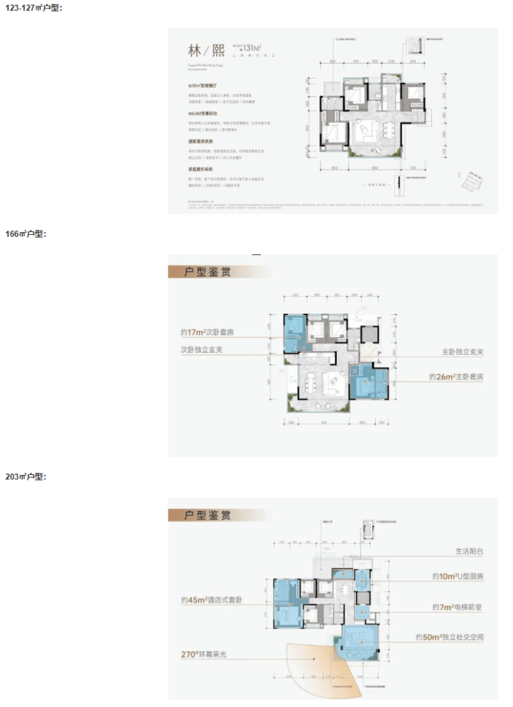 项目首批次主力在售123-166㎡的臻装大平层及少量293㎡底跃产品,户型设计兼顾功能性、舒适度与稀缺景观视野,满足高端家庭一步到位的终极改善需求。