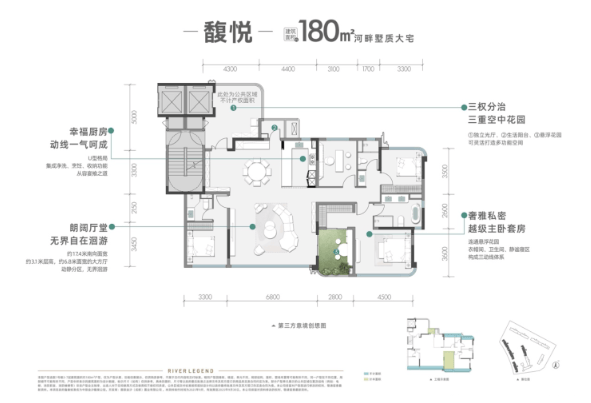 此户型在舒适尺度内实现了功能的全面升级。双套房设计确保了两代主人的独立与私密,客厅与主要卧室均面向河景或园景,拥有极佳的采光与视野。空间布局方正高效,兼顾了家庭聚会与成员静处的双重需求,是精英家庭进阶主城河居生活的品质之选。