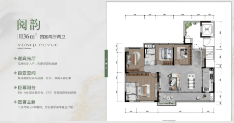 建面约136㎡四室两厅两卫 (奢阔改善)