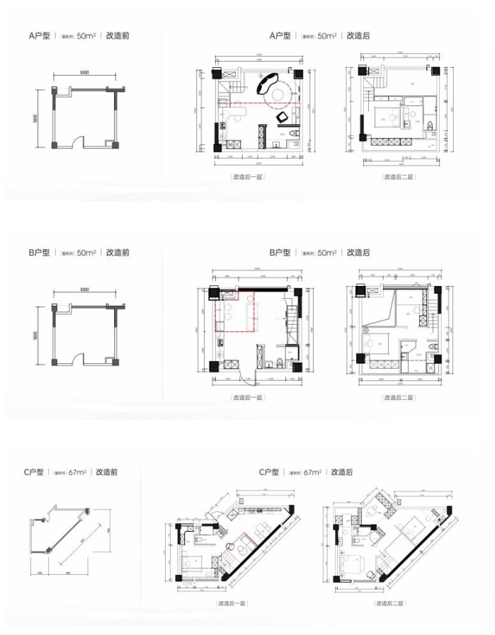 04 产品解析 全系50-67㎡灵动LOFT,以现房实景与多元选择,满足科学城菁英自住、投资与工作室创业的复合需求
