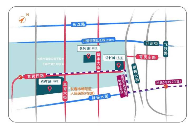 【医疗配套】朝阳区人民医院在建(三期和烨对面),吉林国健新妇产医院,吉林省第二人民医院(车行8分钟)