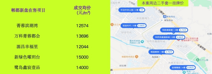 周边新房均价 12000元/㎡起,2倍本案价格;周边二手房套一挂牌价高出本案2-4K。