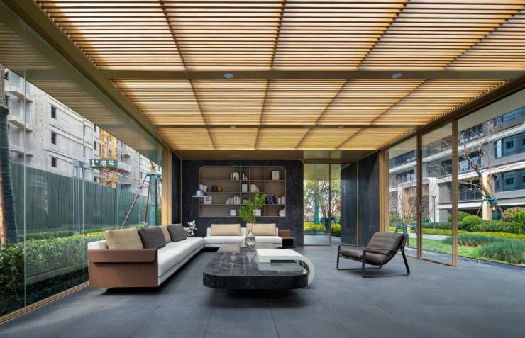 1.先锋美学立面:现代极简主义,大尺度落地窗,公建化立面。