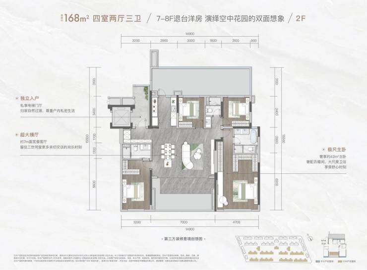 二楼168㎡实得面积210平露台40㎡;