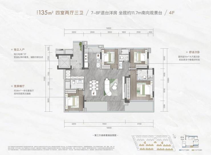 四楼135㎡实得面积150㎡;