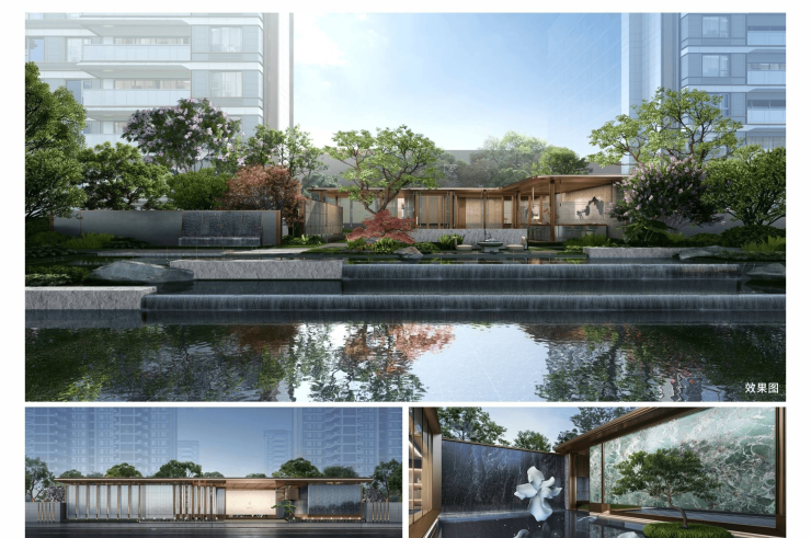 景观体系:十字轴线景观布局,打造九大主题园林(含天工锦卷、芙蓉汀院等),户户享中庭景观