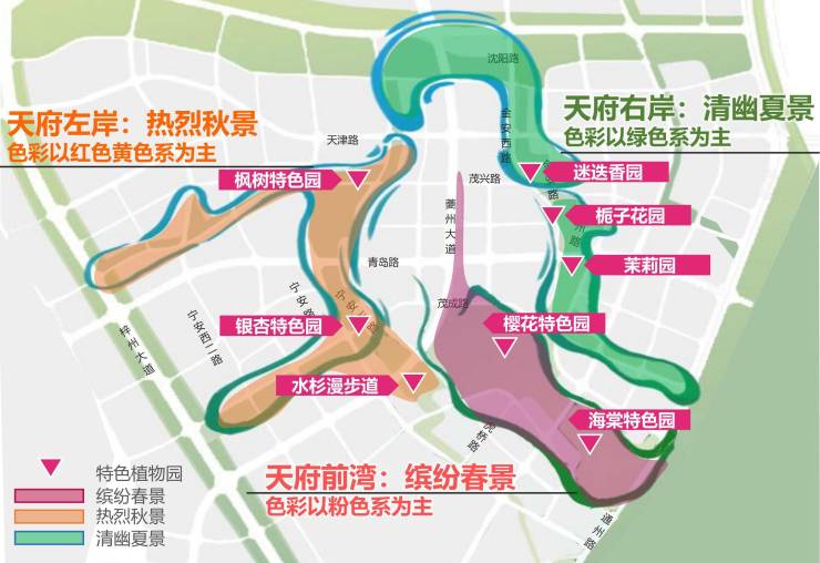 生态景观:规划中的863亩法务岛生态绿廊,包含200亩樱花园、60亩海棠园、40亩银杏园、25亩枫林园及3公里滨水步道