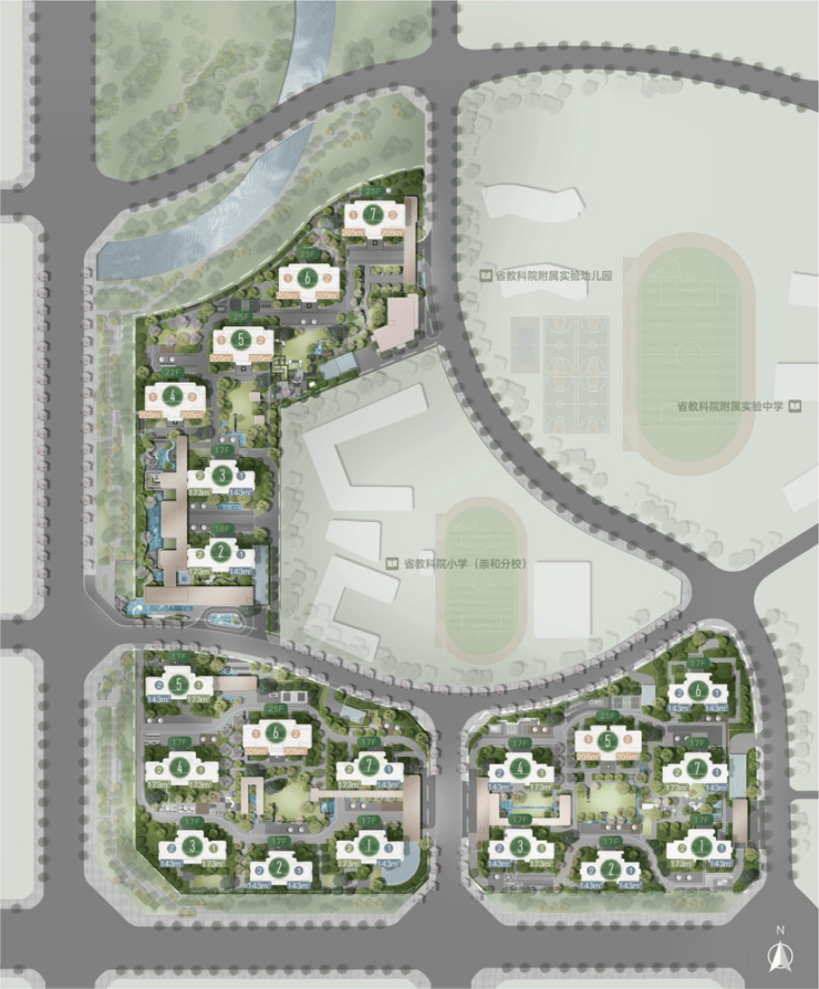 约200M内省教科院附属幼儿园、附属小学(崇和分校)、附属实验中学,享家门口公立优质教育;距与蒙彼利埃小学深入合作的蒙新小学约600米,距私立名校K12金苹果(锦城一中)约2.5KM;约4KM内成都外国语学校(高新美年校区)、成都美视国际学校,国际化菁英教育主场。