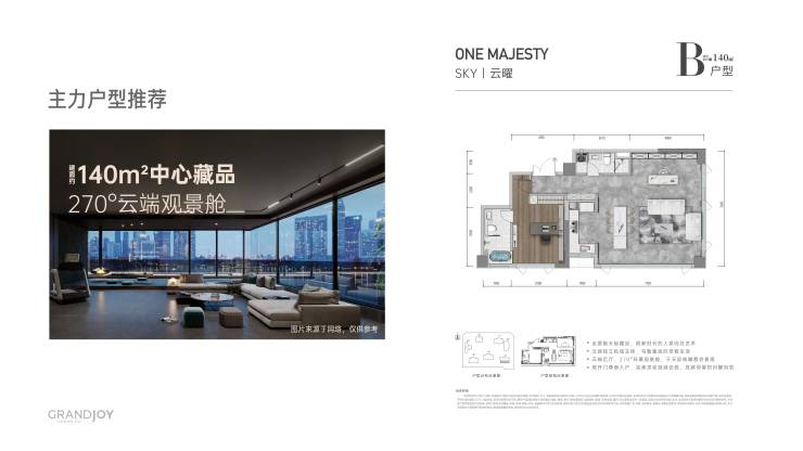 汲取全球地标建筑的立面营造理念,采用米白色、深灰色的颜色打造现代轻奢的高级灰风格,天际光幕外立面,两层挑空入户大堂使用石材、格栅、铝板打造,户内断桥铝LOW-E玻璃和玻璃栏板打造类公建化立面,亮相即是桐梓林颜值地标。
