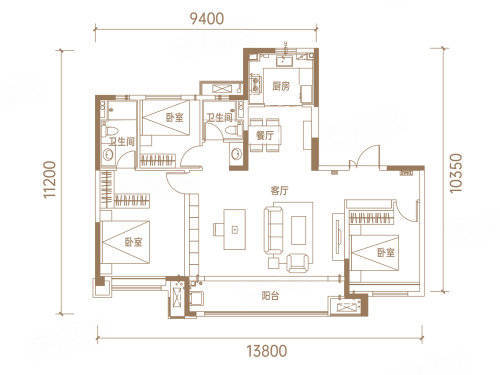 中叠:140m(三室两厅三卫)