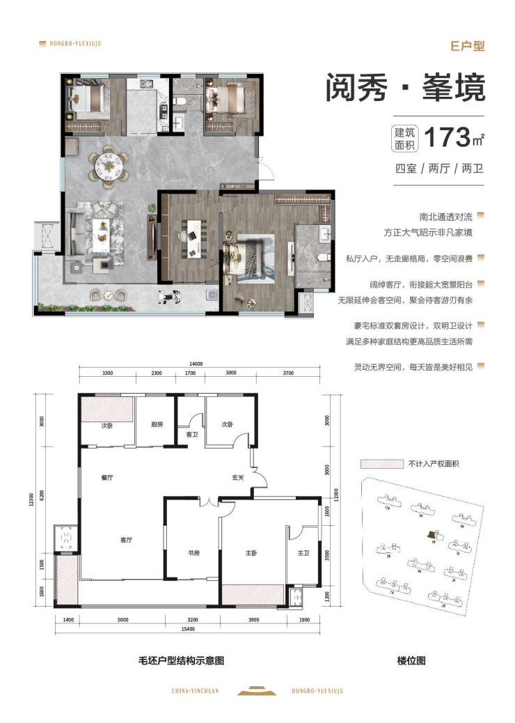 173㎡:四室两厅两卫——可拓展空间约:12.12㎡