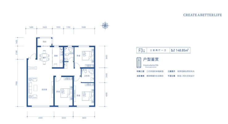 3室2厅2卫:118㎡
