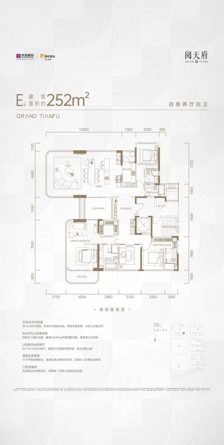 252㎡四居室:单价3.5-4万/㎡,总价890-1020万